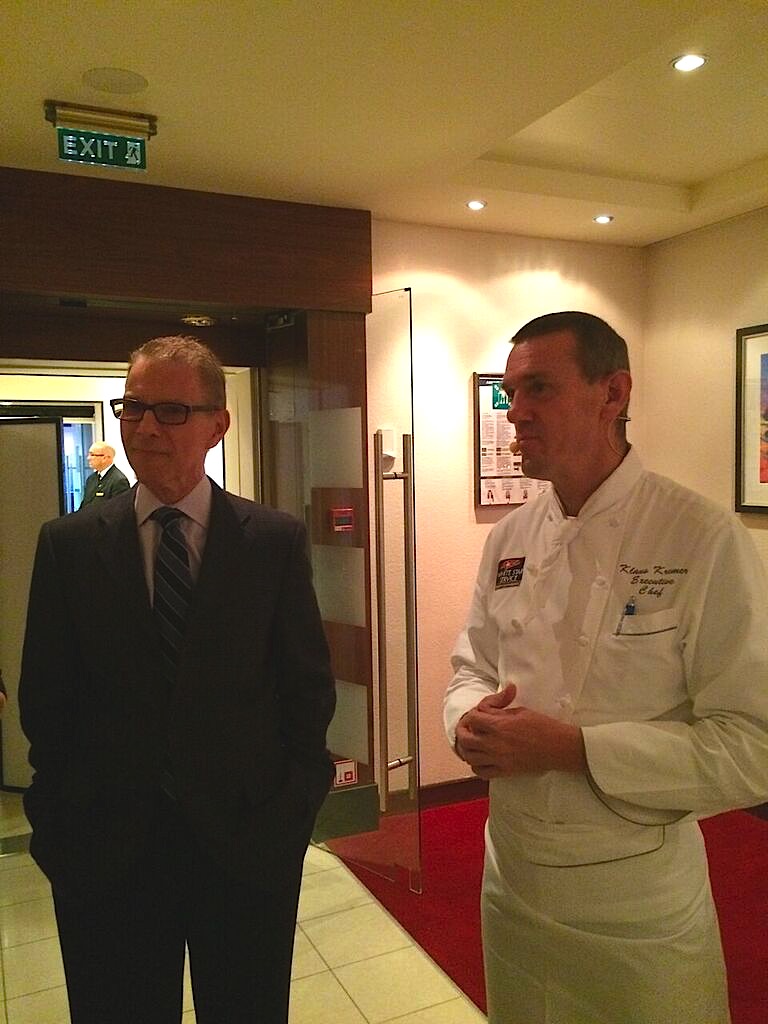 Let me share with you perhaps the most special dining experience we had during the voyage. If it hadn’t been for our sommelier, we never would have known about it. For one evening on each crossing, the ship’s Executive chef, Klaus Kremer, collaborates with Chief Sommelier, John Baskar, to create the “Chef’s Table”, a multi-course tasting menu with wine pairings. This feast is available to only 12 guests, keeping it exquisitely intimate. Best of all, the venue is the Chef’s Galley on Deck 7 which has a private kitchen where Klaus prepares the meal in front of us. Before each course, John explains each wine we’re about to drink and why he chose it to serve with each course.