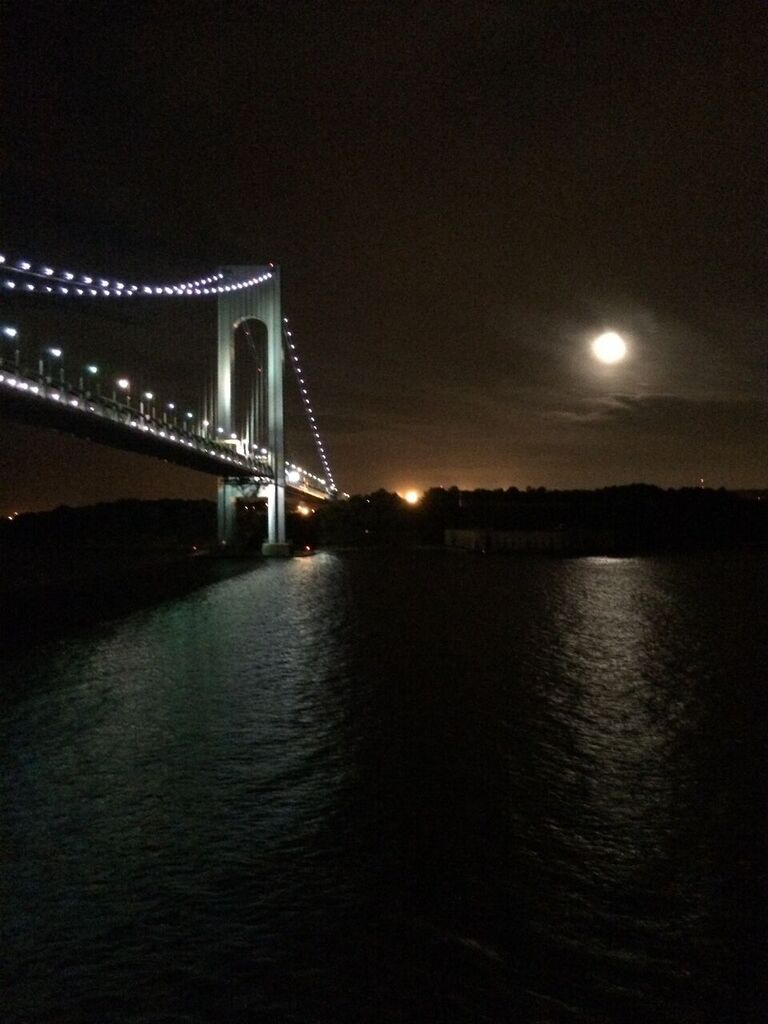 The only downside is that the ship was scheduled to be at the bridge at 4:45 AM. Having done it before, we had NO INTENTION WHATSOEVER of getting up that early to see it but, well, you know. We just woke up and there we were. Although it was very cool outside, there happened to be a full moon and it was totally worth being awake to see it and the bridge from our balcony.
